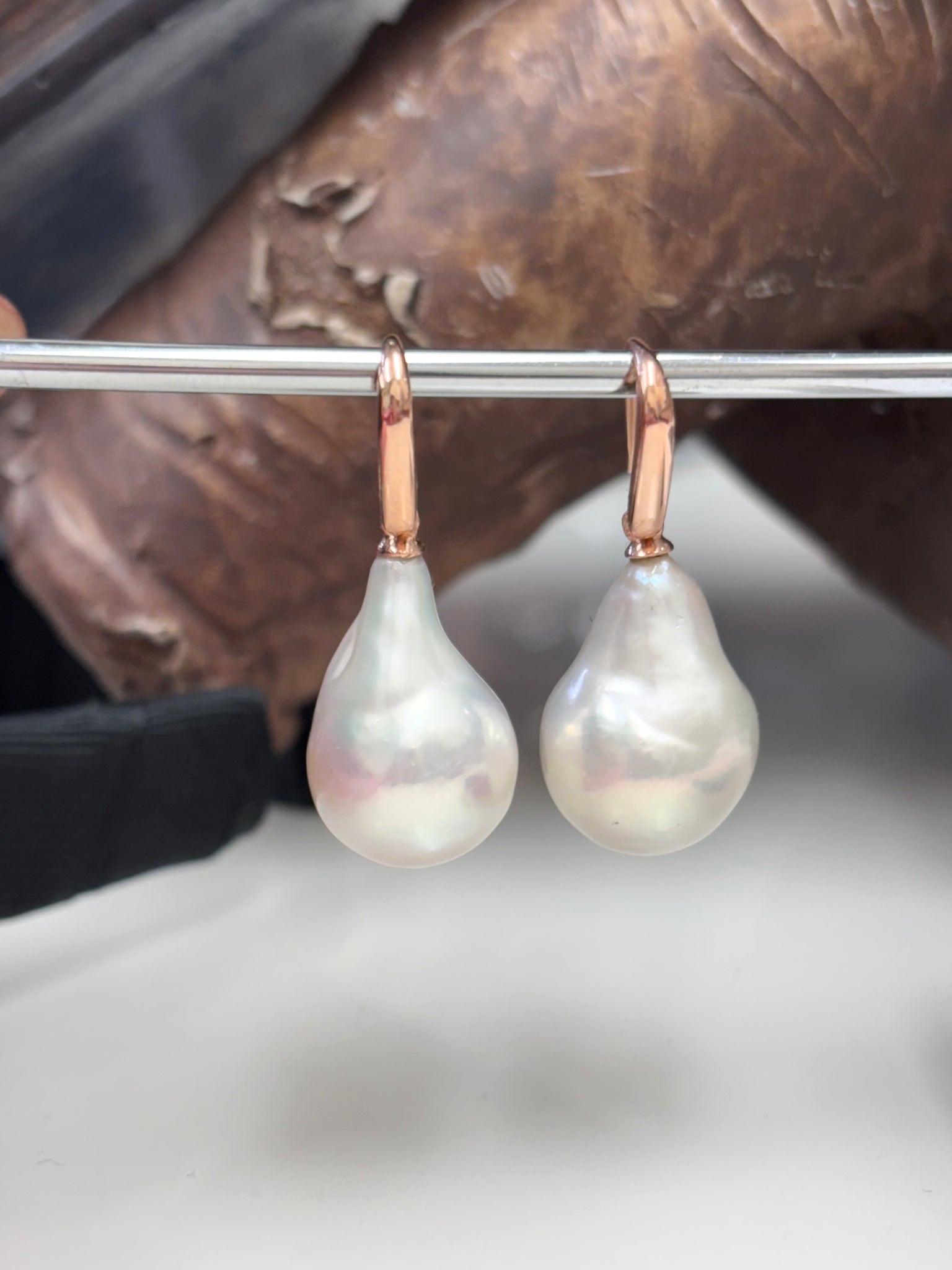 9ct Rose Gold Baroque Pearl Drop Earrings