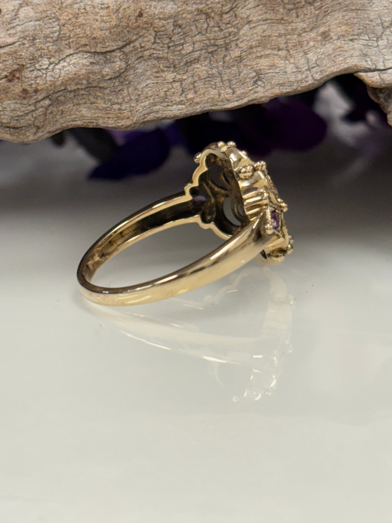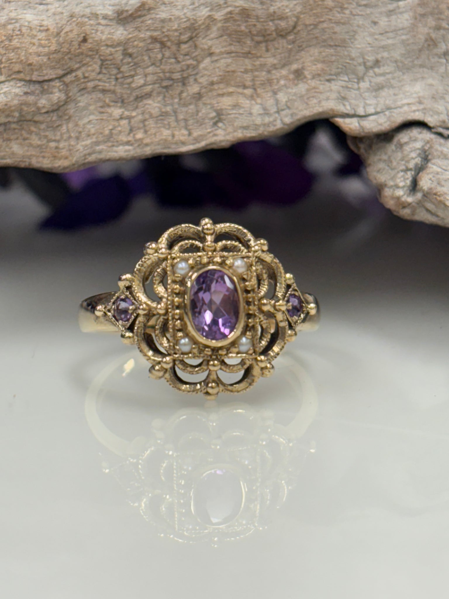 9ct Y/G Amethyst & Seed Pearl Ring