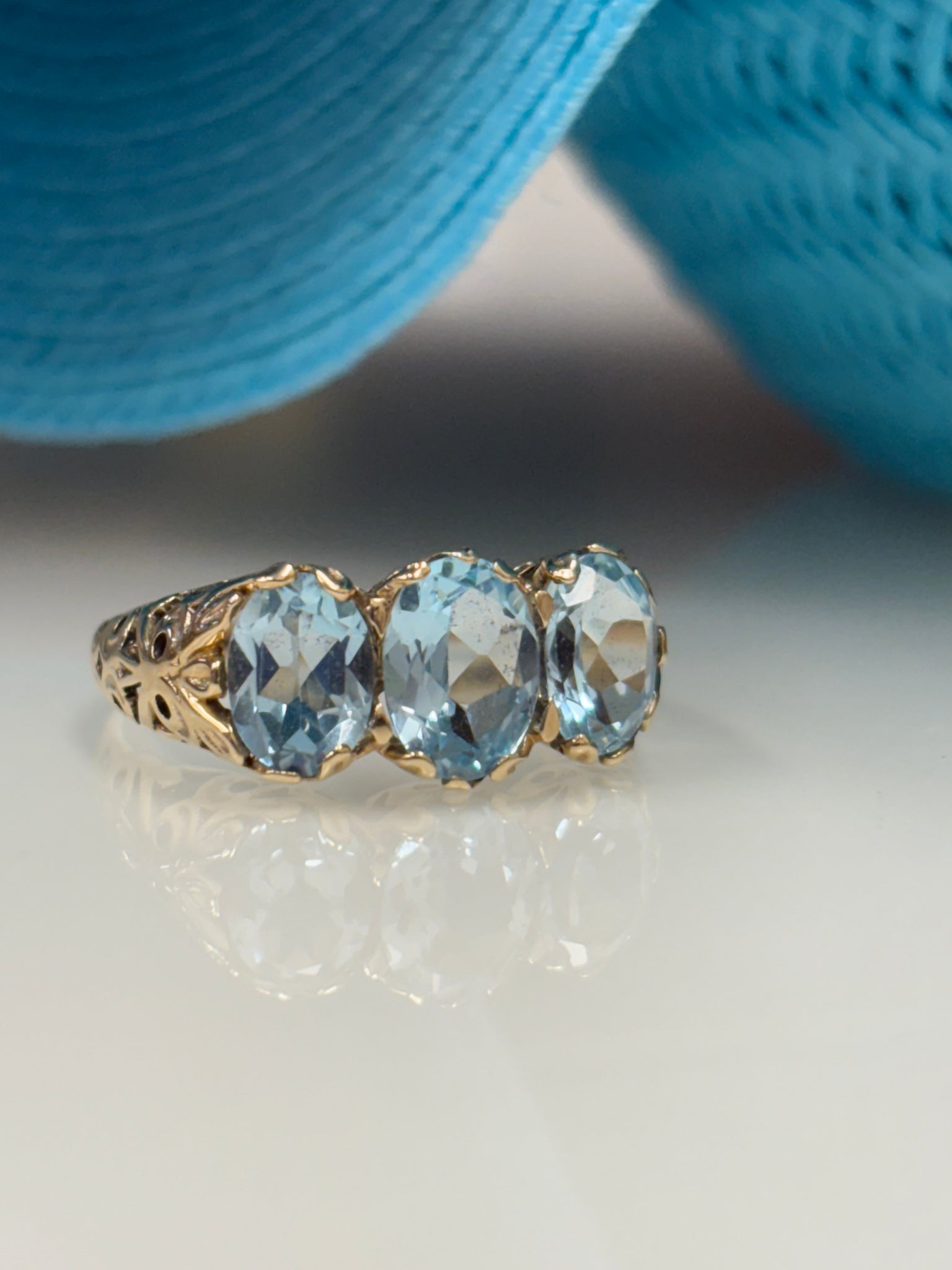 9ct Yellow Gold Blue Topaz Ring with intricate design